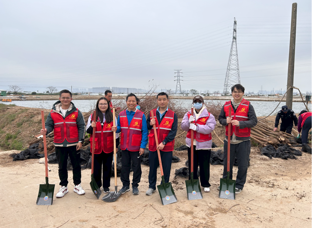 2月26日、27日,为认真落实市国资委关于绿美生态建设的部署要求,充分发挥基层党组织战斗堡垒作用和党员先锋模范作用,全力推动集团党员干部职工积极投身乡村绿化建设一线,按照《必赢3003no1线路检测中心高质量党建引领绿美珠海生态建设实施方案》要求,必赢3003no1线路检测中心党委办公室牵头组织机关党总支13名党员代表参加纵向帮扶金湾红旗镇沙脊村和斗门莲洲镇石龙村义务植树活动,在红旗河沿岸和石龙村河岸种植水杉和紫花风铃树,同心协力打造绿美乡村。