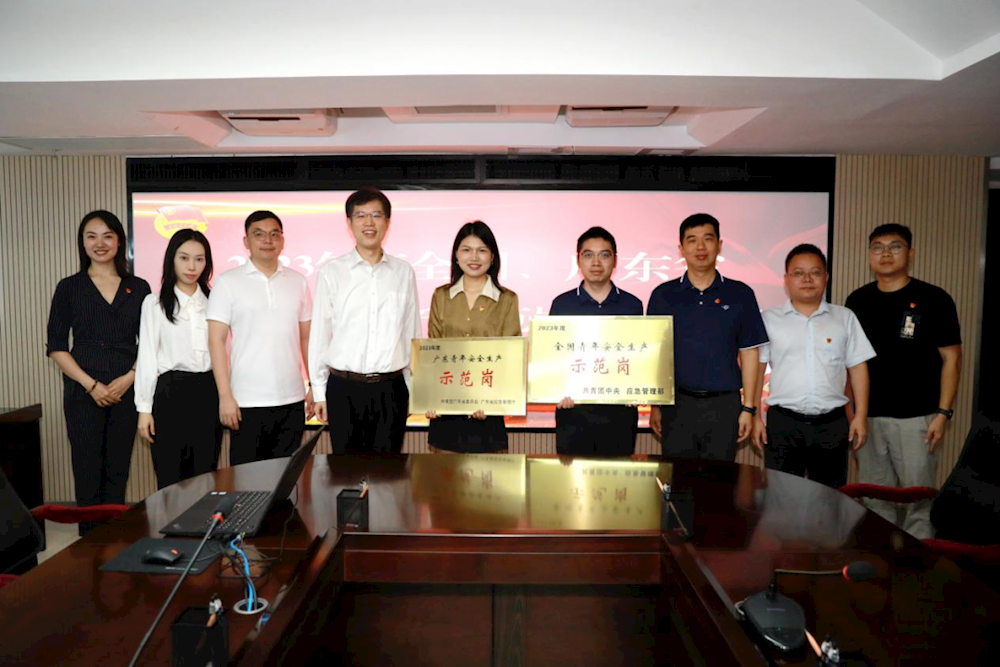 7月9日,共青团珠海市委员会副书记谢明华带队到必赢3003no1线路检测中心进行“2023年度全国青年安全生产示范岗”授牌,必赢3003no1线路检测中心总工程师赵凯、集团团委负责人及相关工作人员参加了授牌仪式。