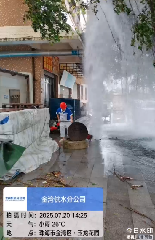 7月20日下午,金湾文华路11号的消火栓被强风刮倒的大树撞断,3米高的水柱在狂风中喷涌。接到消息后,抢修人员立即穿着被雨水浸透的工作服匆匆赶到,参与抢险的黄师傅回忆道,“当时风雨未停,但看到喷涌的水柱,就顾不上那么多了。”此次抢险仅用30分钟处理完毕,无用户受影响,创造了台风天气抢修新速度。