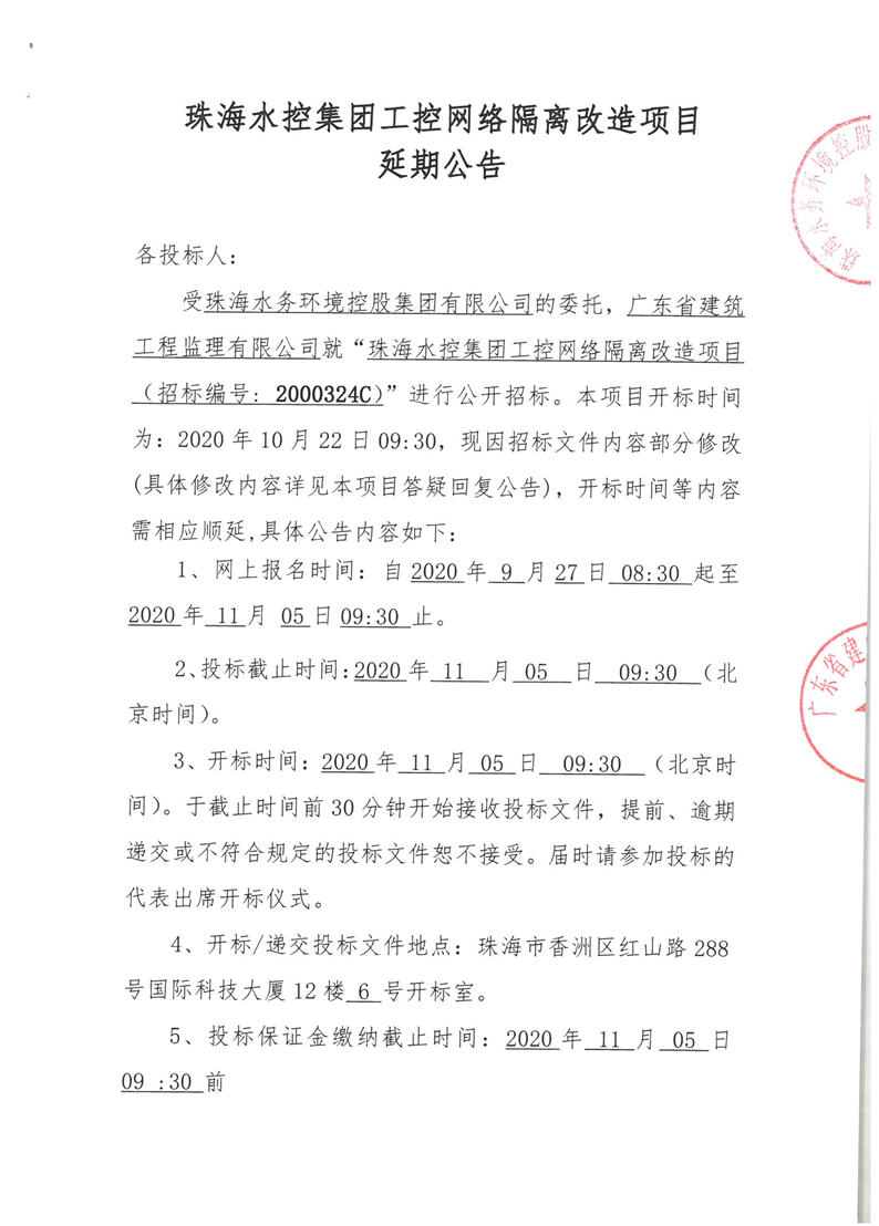 必赢3003no1线路检测中心工控网络隔离改造项目延期公告